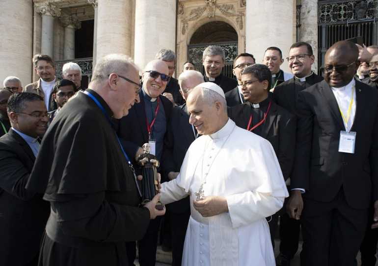 Durante a audiência, o grupo presenteou o Santo Padre com uma imagem de São Vicente Pallotti, cuidadosamente produzida no Brasil. O gesto simboliza o carisma palotino, a vitalidade da missão e a presença viva da Família Palotina ao redor do mundo.