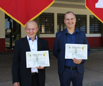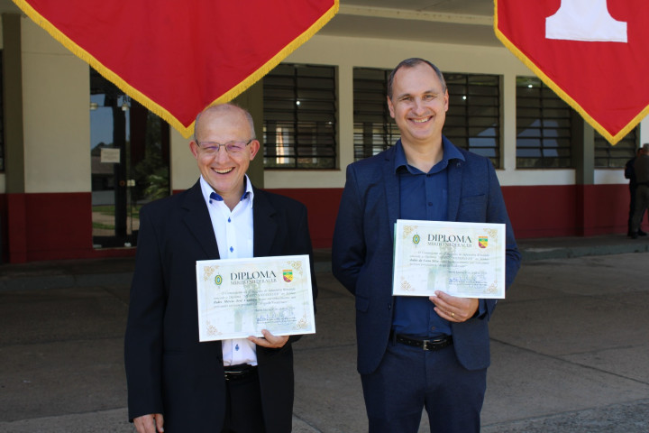 Entre os homenageados, estiveram o diretor da Faculdade Palotina, padre Mércio Cauduro, e o coordenador acadêmico da instituição, professor Jolair da Costa.