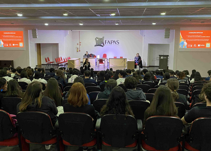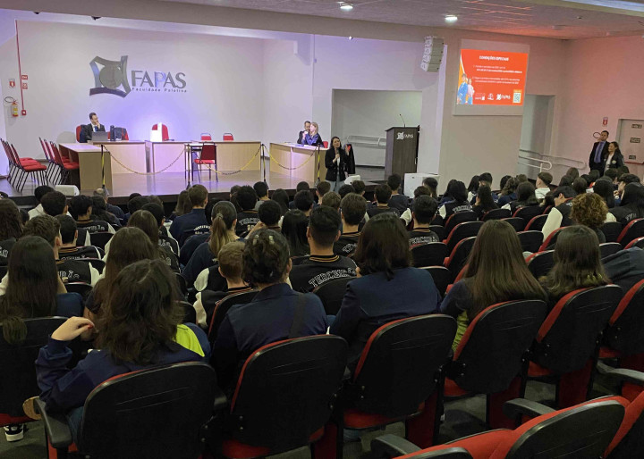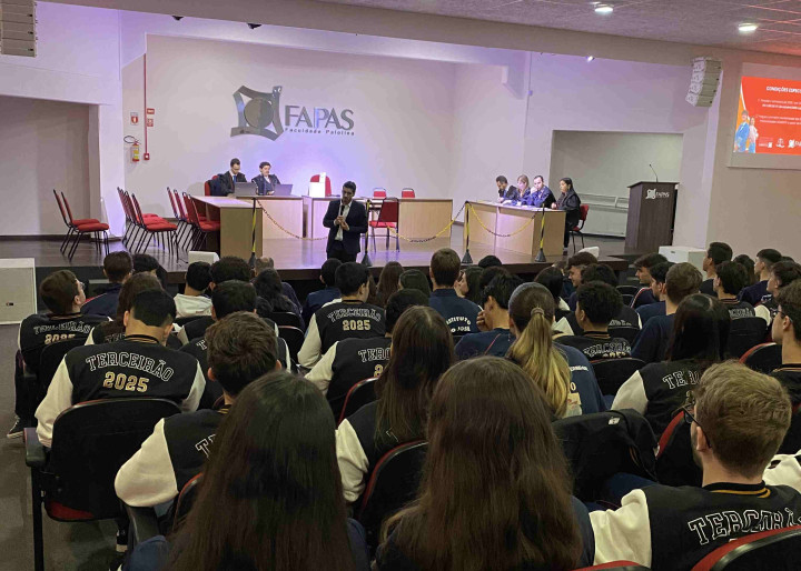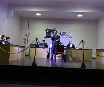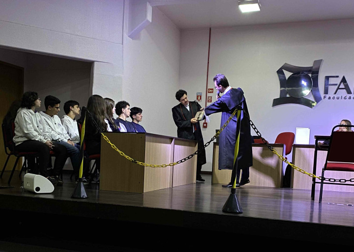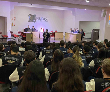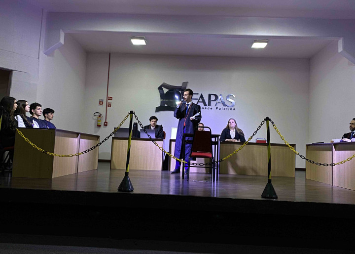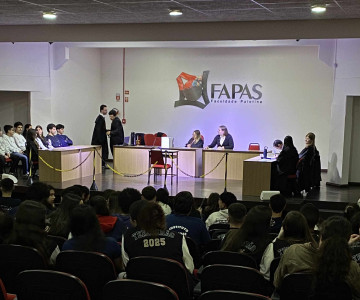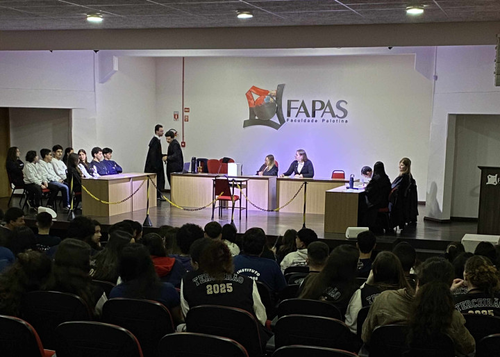 A Faculdade Palotina (FAPAS) promoveu um momento especial de aprendizado e integração por meio da realização do Júri Simulado, atividade pensada para aproximar os estudantes do Ensino Médio da vivência acadêmica e profissional do Direito. A iniciativa reuniu turmas dos terceiros anos de diversos colégios de Santa Maria, que tiveram a oportunidade de conhecer de perto o cotidiano de advogados e estudantes do curso de Direito da instituição.