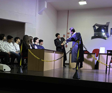Durante a dinâmica, os visitantes atuaram como jurados, observando a construção dos argumentos e a atuação das partes envolvidas, o que permitiu uma compreensão prática do funcionamento de um julgamento. A experiência buscou mostrar, de forma clara e envolvente, como é estar em um tribunal e quais habilidades são exigidas na área jurídica.