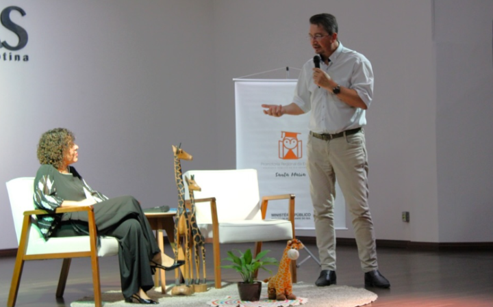 No período da tarde, houve a distribuição da cartilha “O Impacto do Uso de Telas em Estudantes/Crianças: desenvolvimento, aprendizagem e bem-estar”, produzida pelo Grupo de Estudos de Psicopedagogia Institucional Escolar – PREDUC SM, com apoio do Projeto Pallotti.